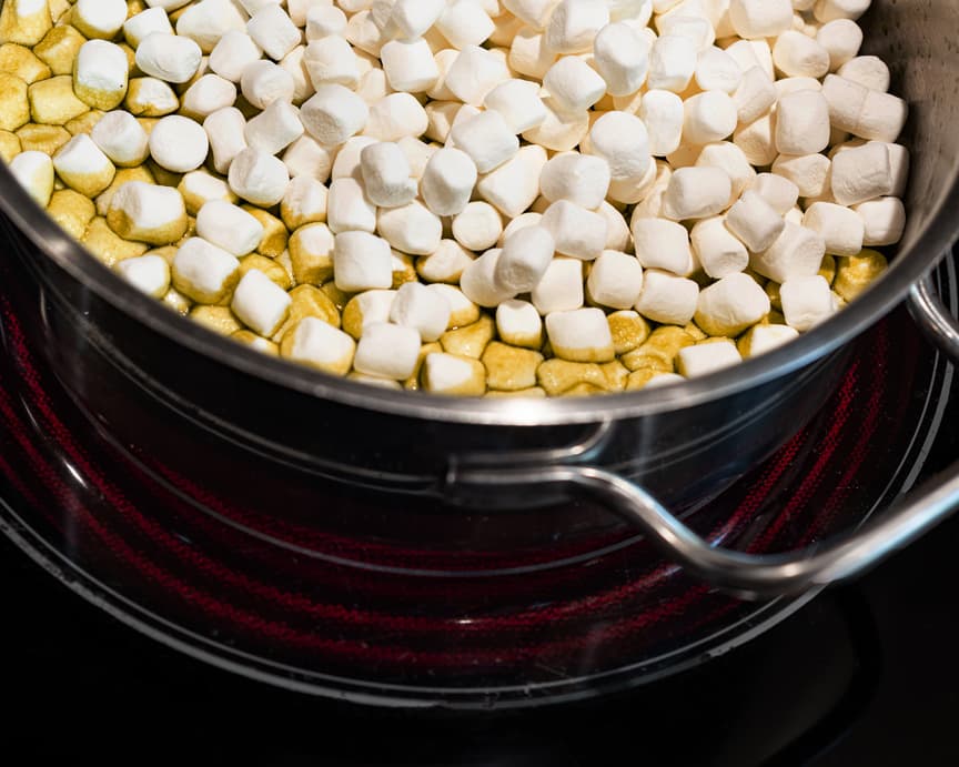 2. Add in the marshmallows and stir consistently until they completely melt.